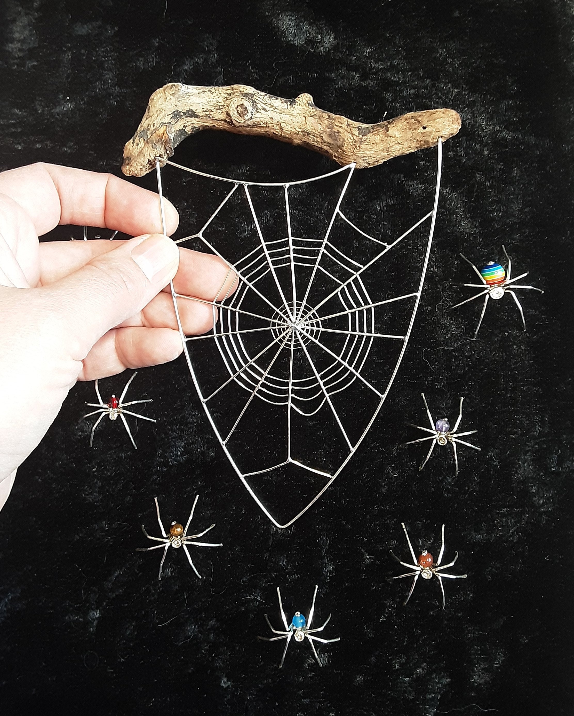 Small Cobweb Mounted On Scottish Driftwood With Gemstone Etsy Uk