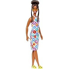 Barbie Fashionistas Doll 210 With Brown Hair In Bun Wearing Colorful Crochet Halter Dress Sunglasses And Sandals Hjt07 Amazon Co Uk Toys Games